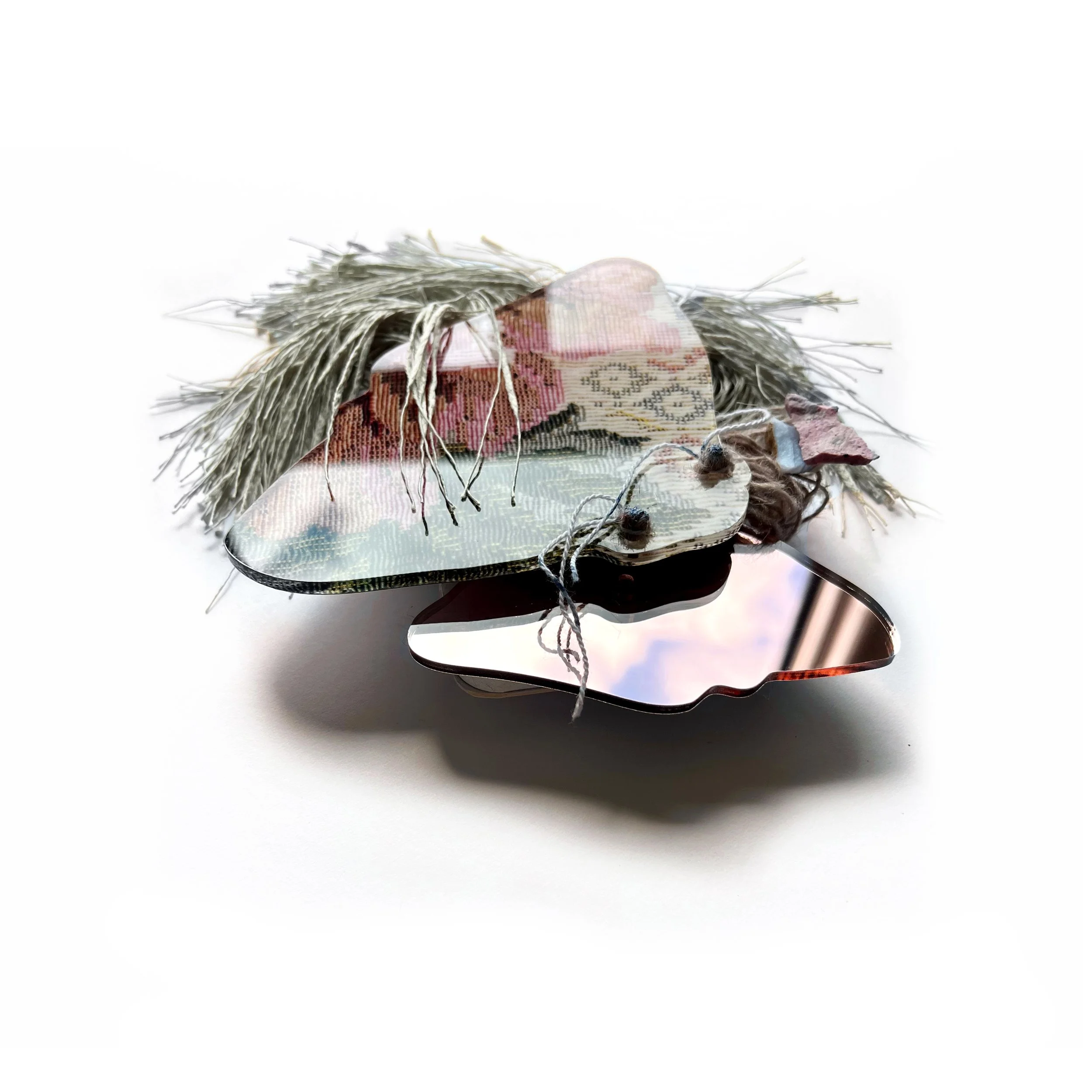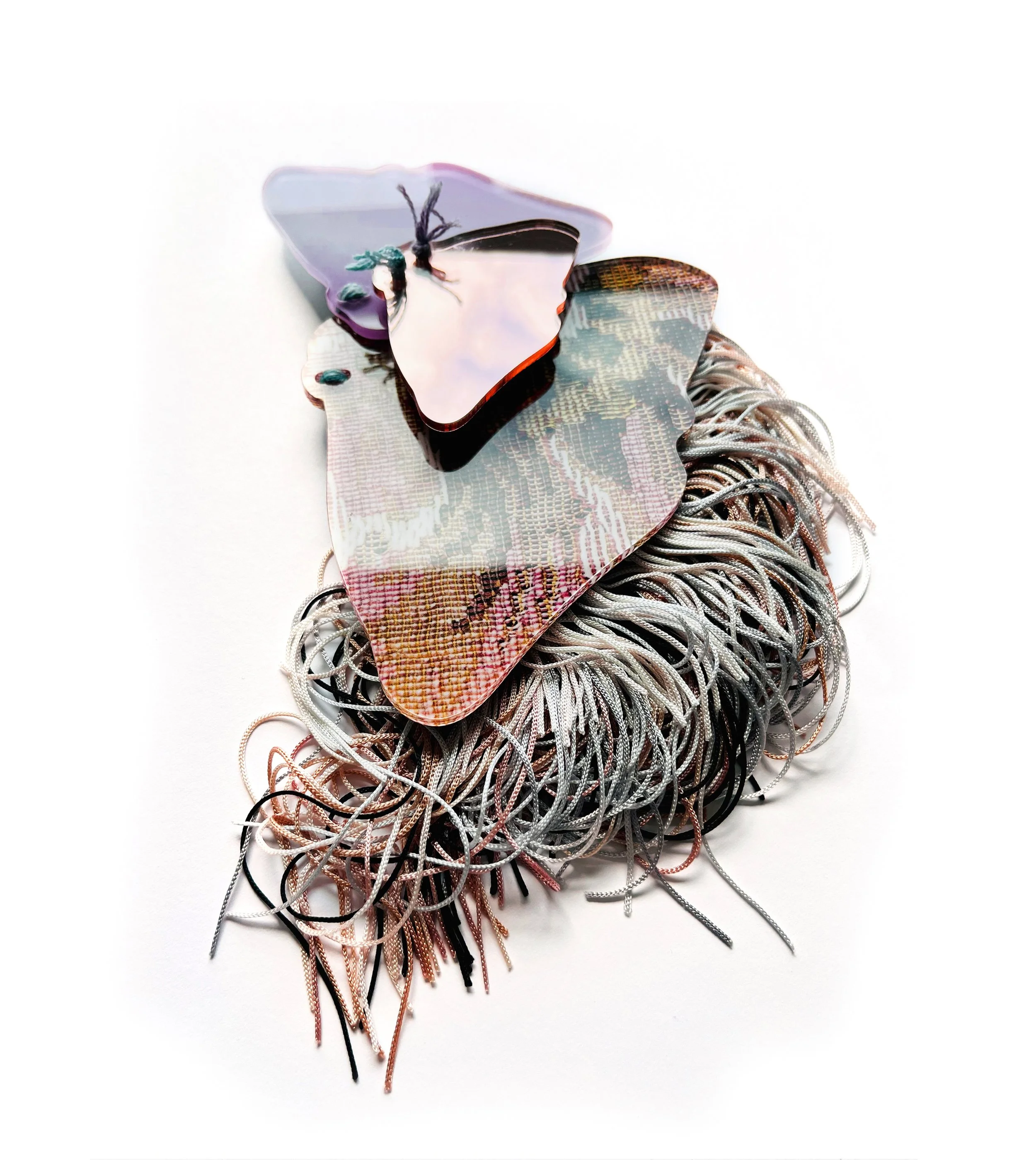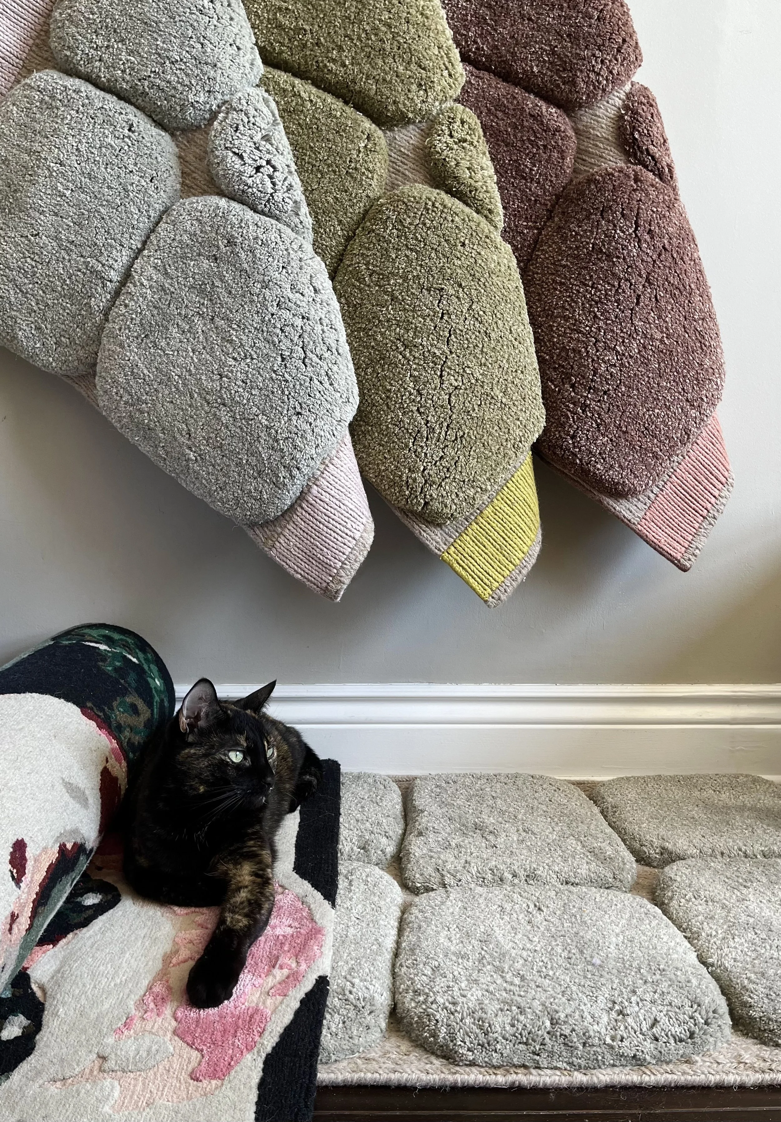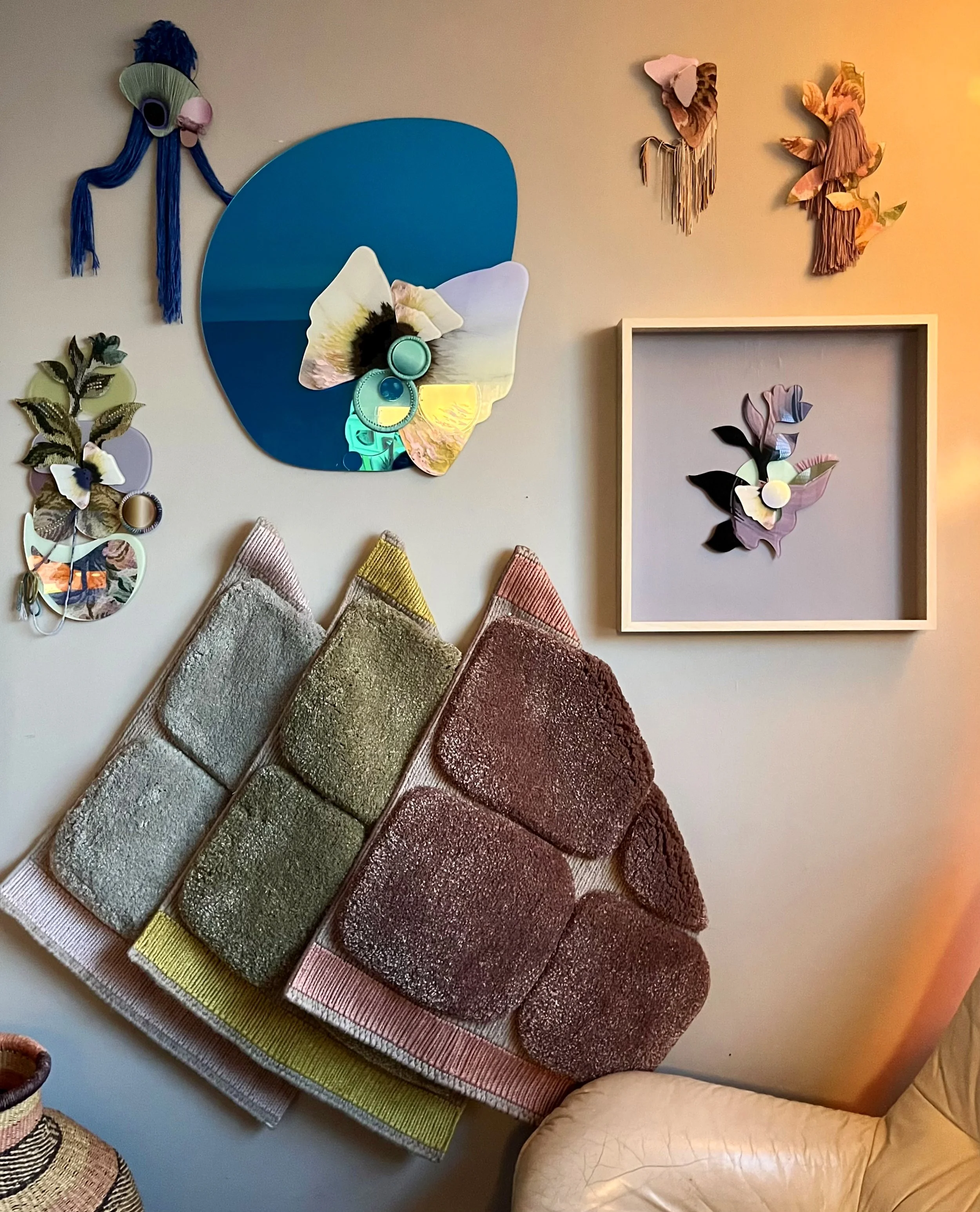 “For about fourteen years, I’ve been translating my illustrations, collages, and paintings into my rug designs that are hand-knotted in Nepal. In my latest series “Where Wings Tangle” I bring the process full circle - incorporating the same yarns used in my rugs, back into my artwork as embroidered elements. My rugs inspire my art, and then my art inspires my rugs. I find my practice helps me stay grounded in a craft that has shaped my livelihood, while paying tribute to the weavers I’ve been collaborating with for over a decade.”
