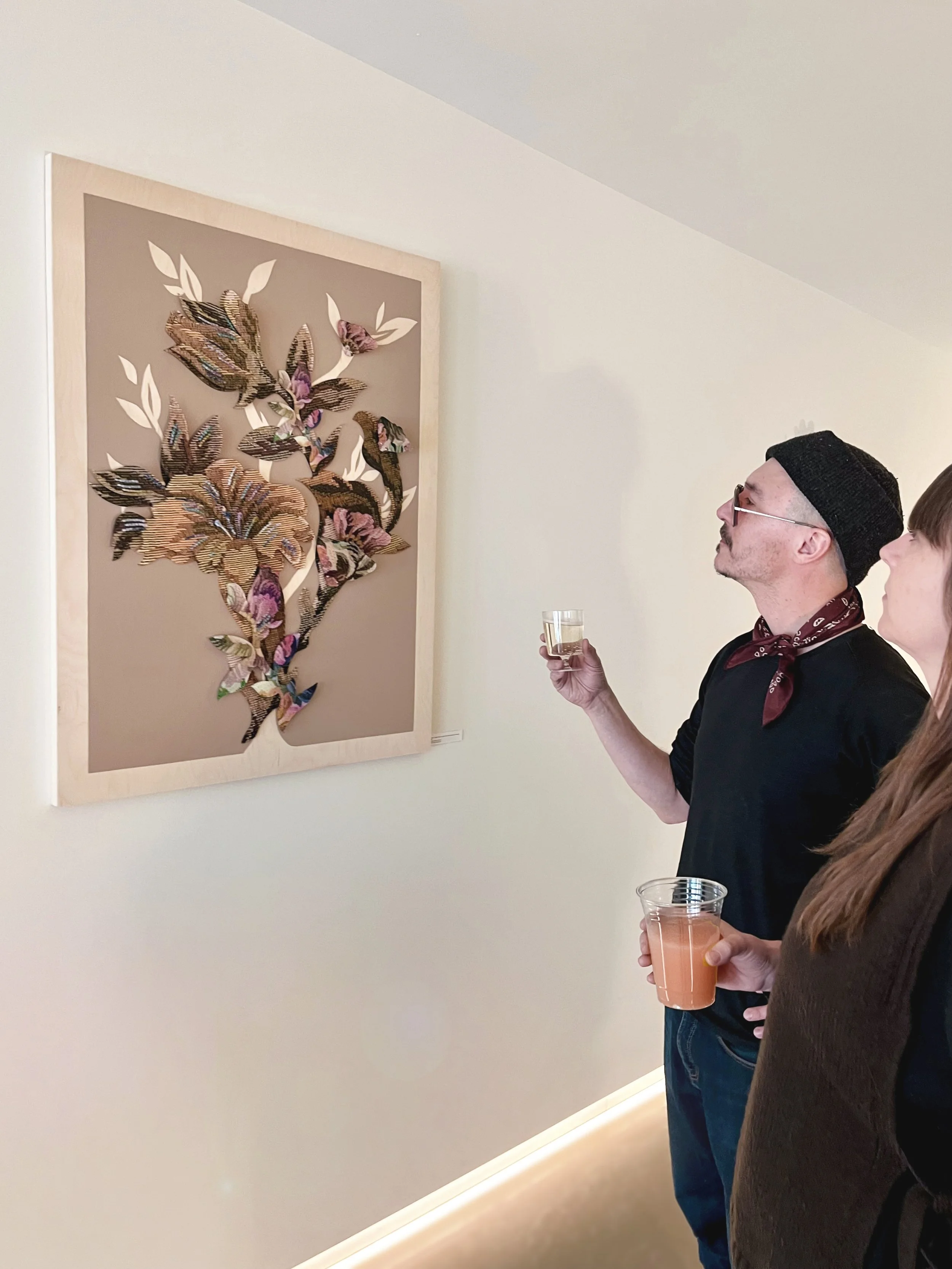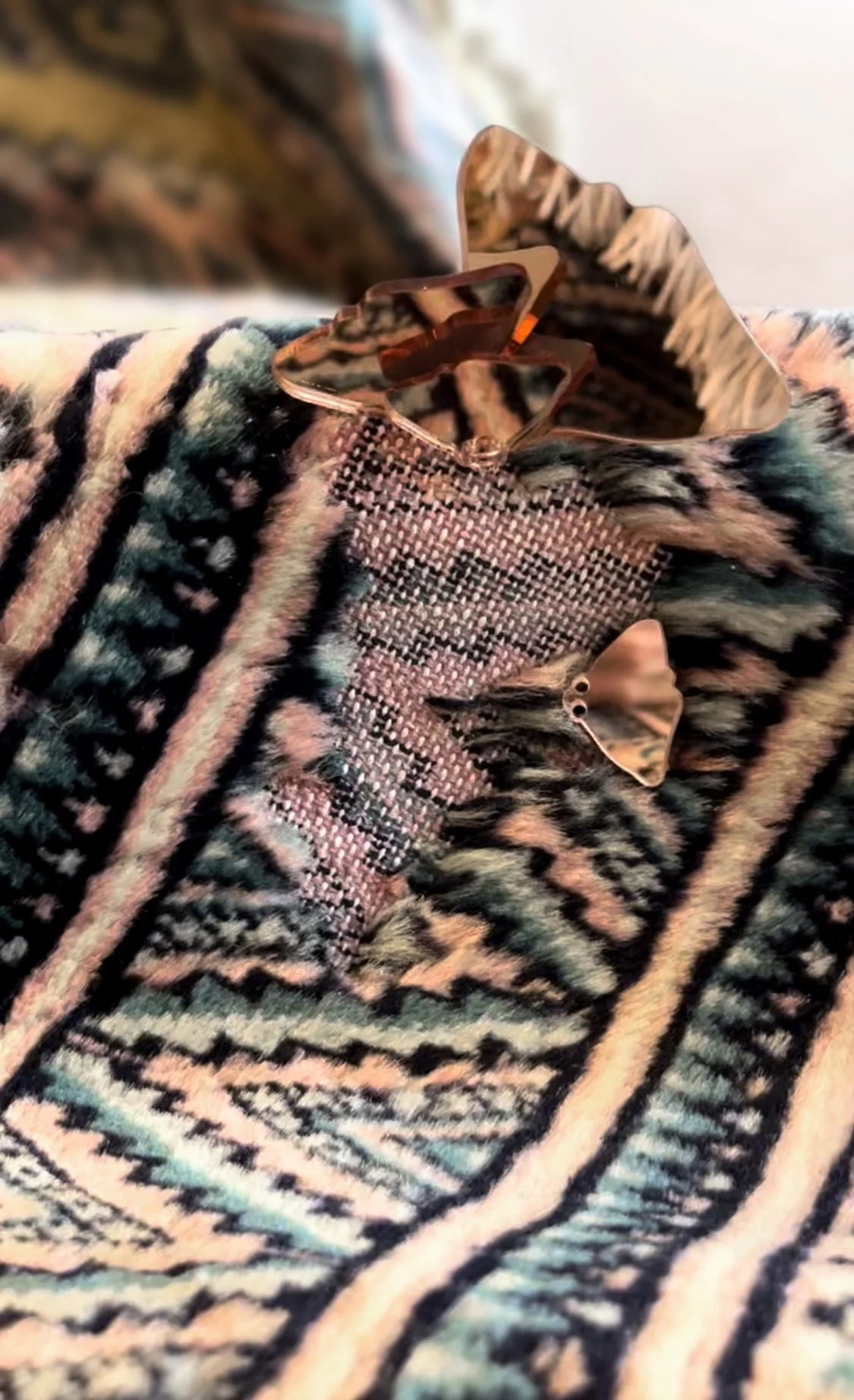 Building on her newest body of work presented at Artist Project in 2025, Robyn Waffle continues her exploration of rug design as an art form, honouring the skilled Nepali weavers she has been collaborating with for over a decade. Installed within R:DESIGN’s 50-foot tunnel, Robyn weaves together acrylic glass, mirror and hand-spun yarns to create a series that embodies a poetic reflection of her passion for rugs. The wool and silk yarns hold warmth, tradition, and care, while the mirror and acrylic glass reflect a colder, fast-moving, manufactured world. Wrapping soft fibres around the sharp edges of the glass becomes a meditative act in repair — like stitching a modern wound, while paying homage to the past. An abstracted Moth moves throughout her work, symbolizing both the beautiful decay of ancient carpets and the quiet alchemy of silk. Robyn Waffle’s exhibition is a celebration of tradition, texture and cross-cultural collaboration, where playful artwork and luxurious rug design converge to create a transformative experience within R:DESIGN’s dynamic showroom.