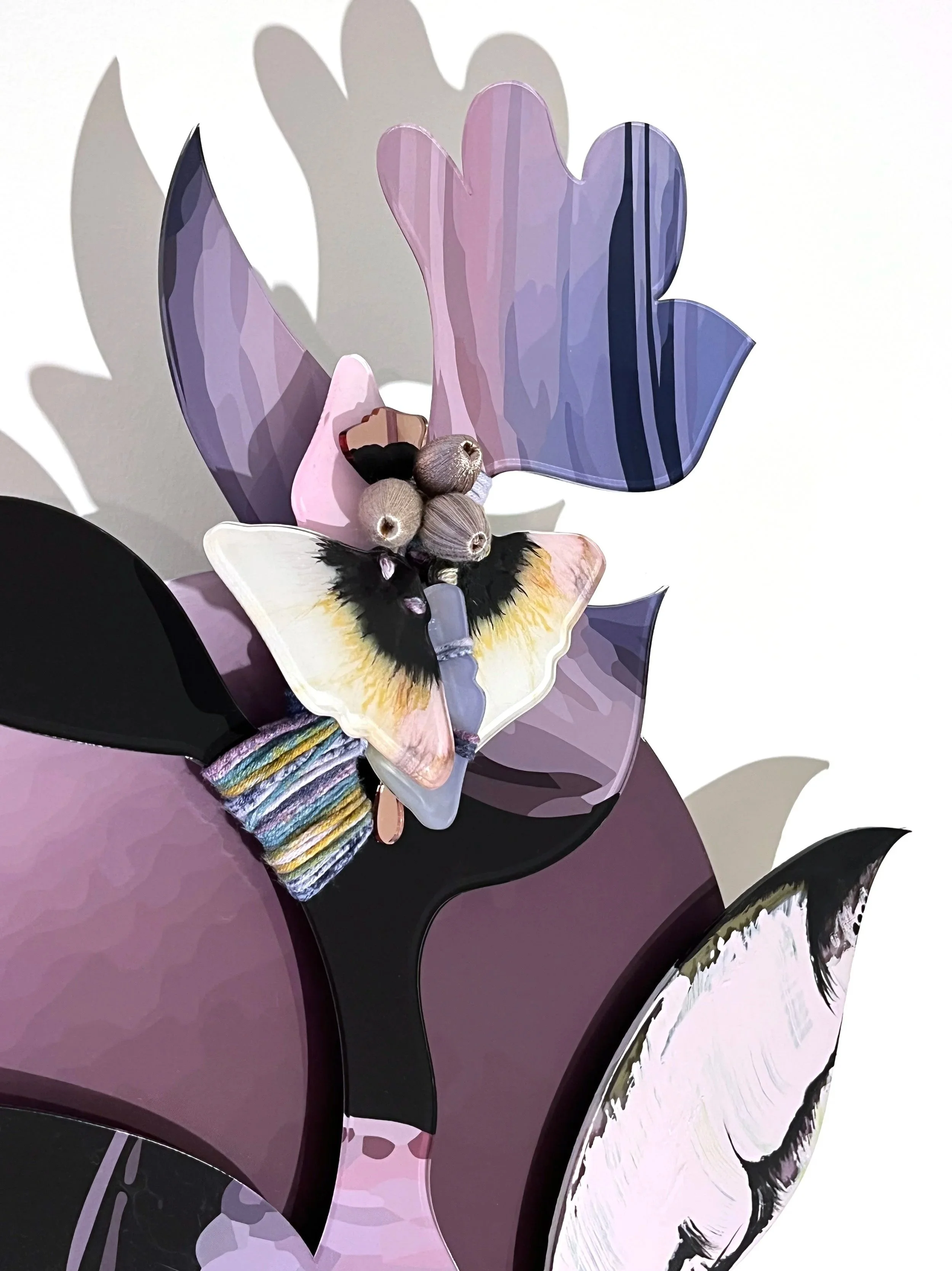 Building on her newest body of work presented at Artist Project in 2025, Robyn Waffle continues her exploration of rug design as an art form, honouring the skilled Nepali weavers she has been collaborating with for over a decade. Installed within R:DESIGN’s 50-foot tunnel, Robyn weaves together acrylic glass, mirror and hand-spun yarns to create a series that embodies a poetic reflection of her passion for rugs. An abstracted moth motif pulses through each piece; evoking both the quiet destruction moths inflict on carpets and the subtle alchemy of silk from which rugs are made from. The wool and silk yarns hold warmth, tradition, and care, while the mirror and acrylic glass reflect a colder, fast-moving, manufactured world. Wrapping soft fibres around the sharp edges of the glass becomes a meditative act in repair — like stitching a modern wound, while paying homage to the past. Robyn Waffle’s newest exhibition is a celebration of tradition, texture and cross-cultural collaboration, where playful artwork and luxurious rug design converge to create a transformative experience within R:DESIGN’s dynamic showroom.